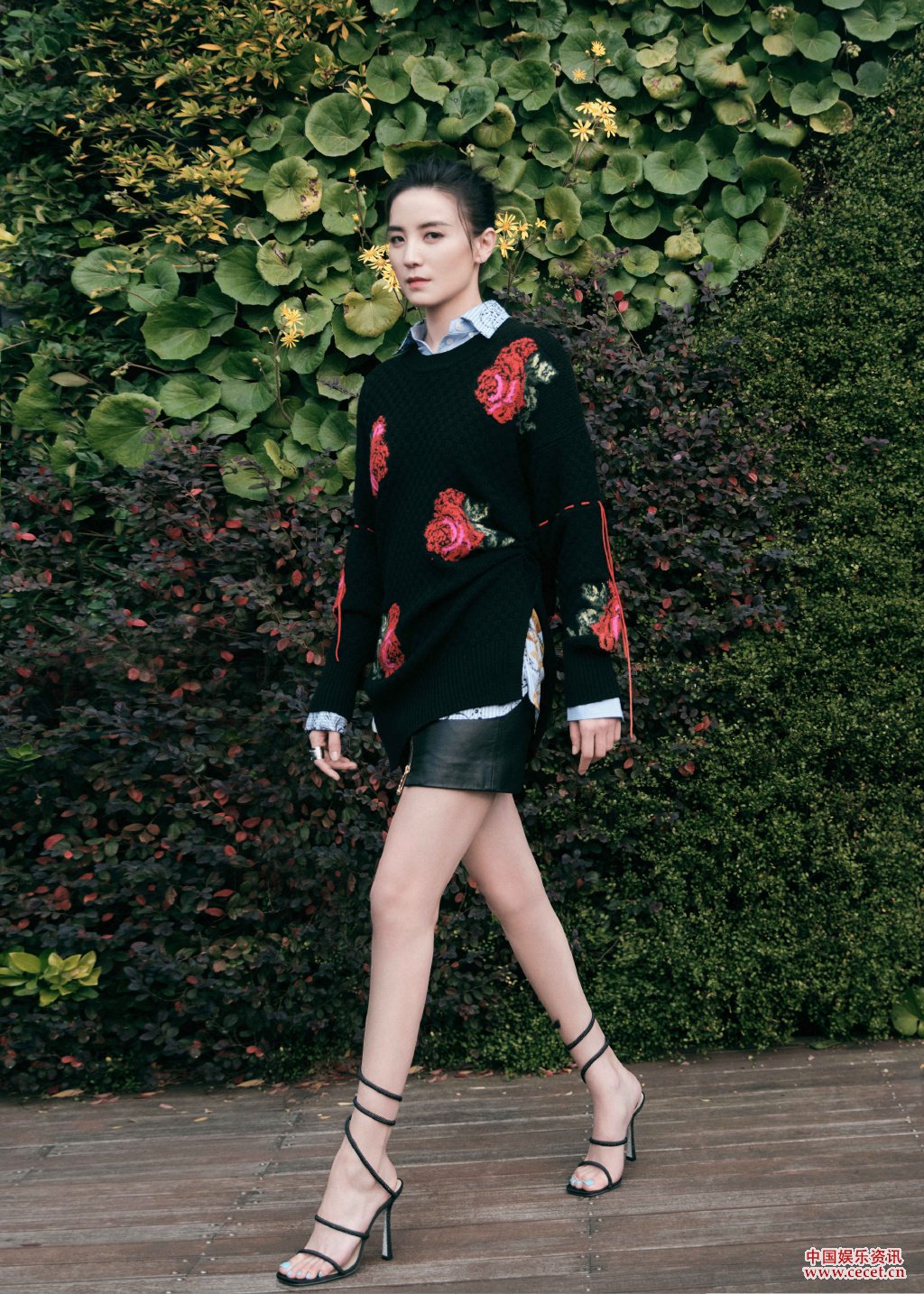 宋佳復古浪漫玫瑰印花針織衫與皮革半裙風(fēng)格碰撞