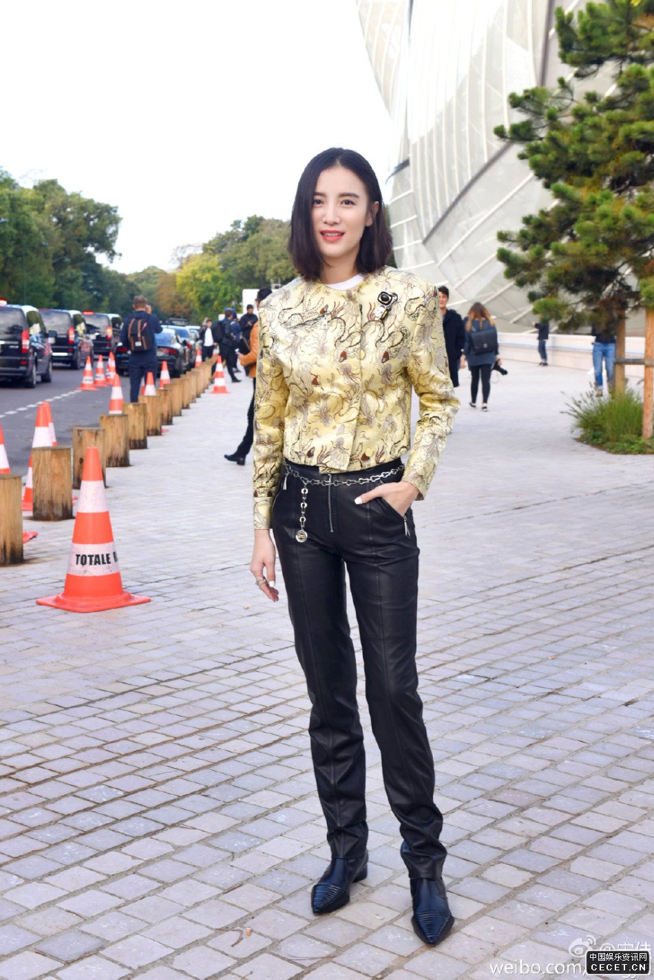 宋佳巴黎時(shí)裝周美圖 緊身皮褲盡顯好身材