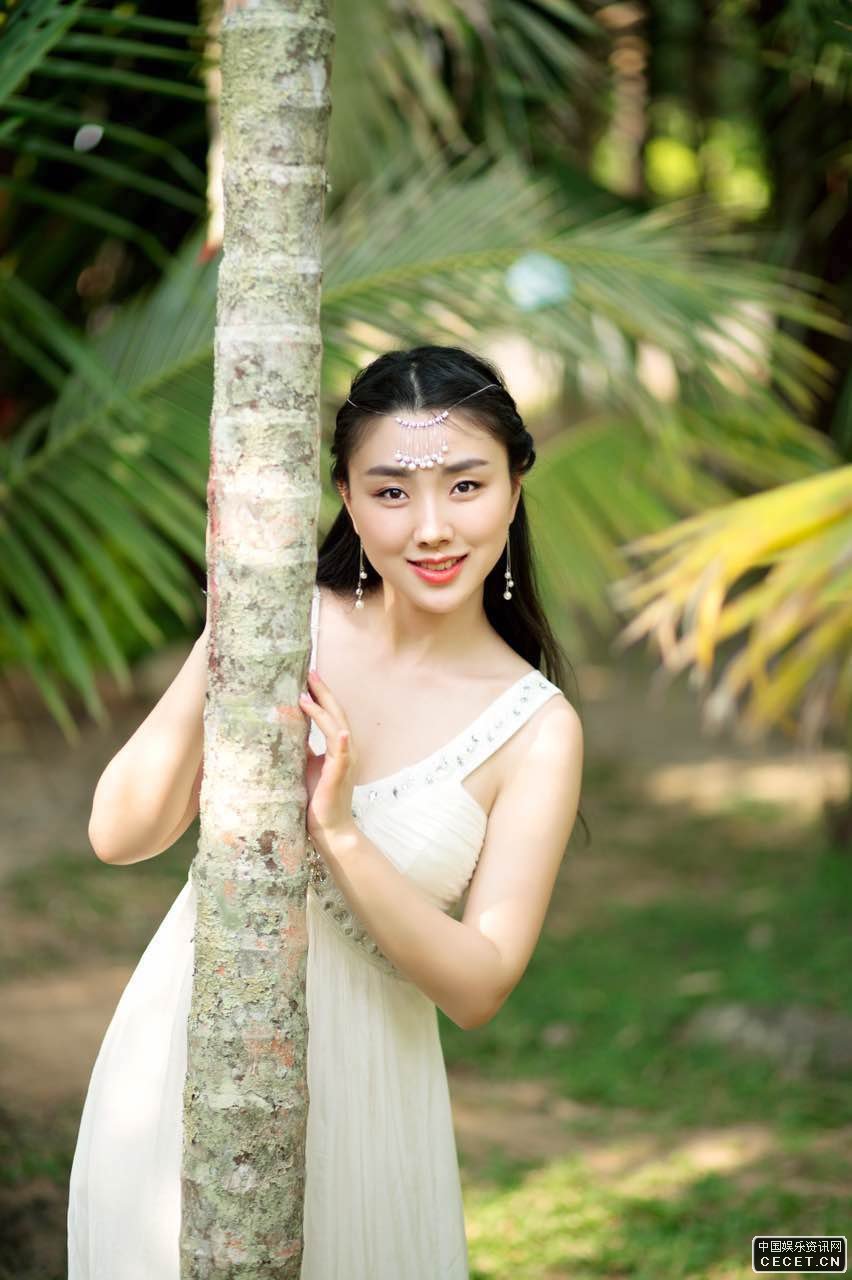 肖洋氣質(zhì)甜美古典寫(xiě)真 穿白裙漫步叢林之中