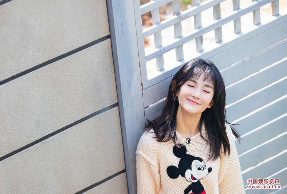 謝娜身穿米奇毛衣搭配黑色百褶裙可愛(ài)復古