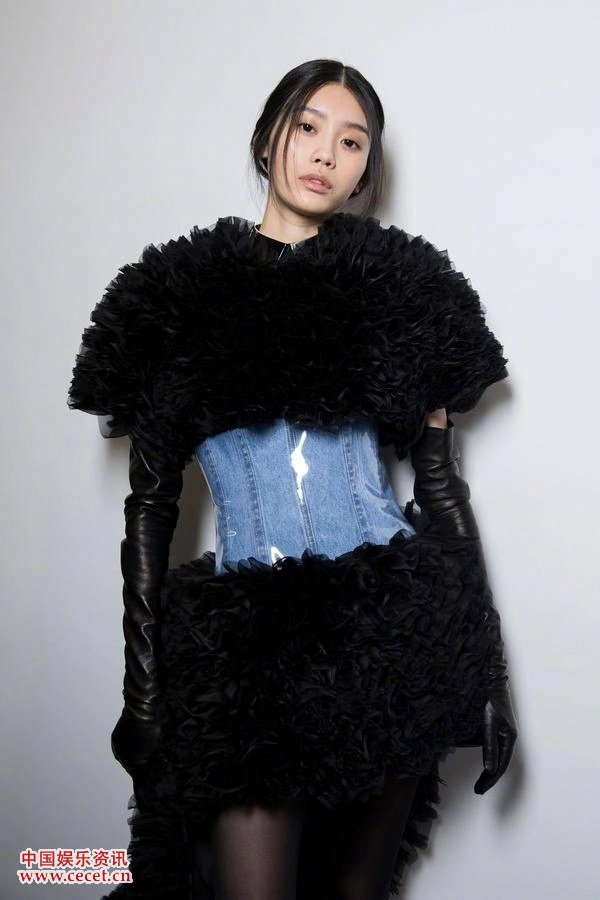 奚夢(mèng)瑤黑色拖尾裙亮相 美腿若隱若現大秀身材