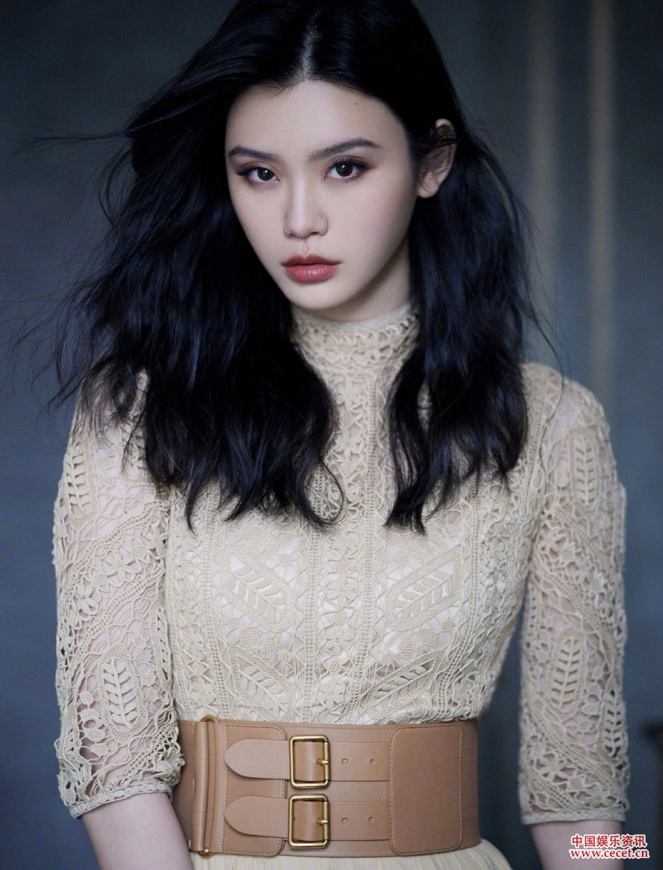 奚夢(mèng)瑤米色蕾絲長(cháng)裙 眼神嫵媚撩人超模氣場(chǎng)不減