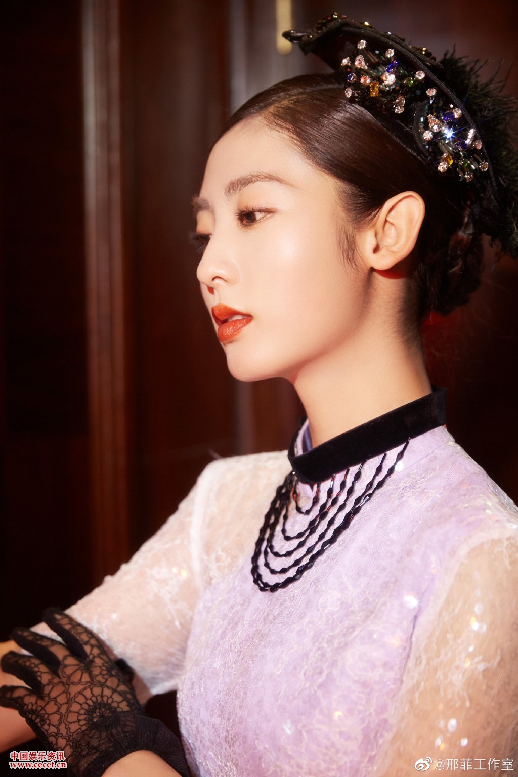 邢菲淡粉薄裙復古造型 大秀迷人曲線(xiàn)極具魅力