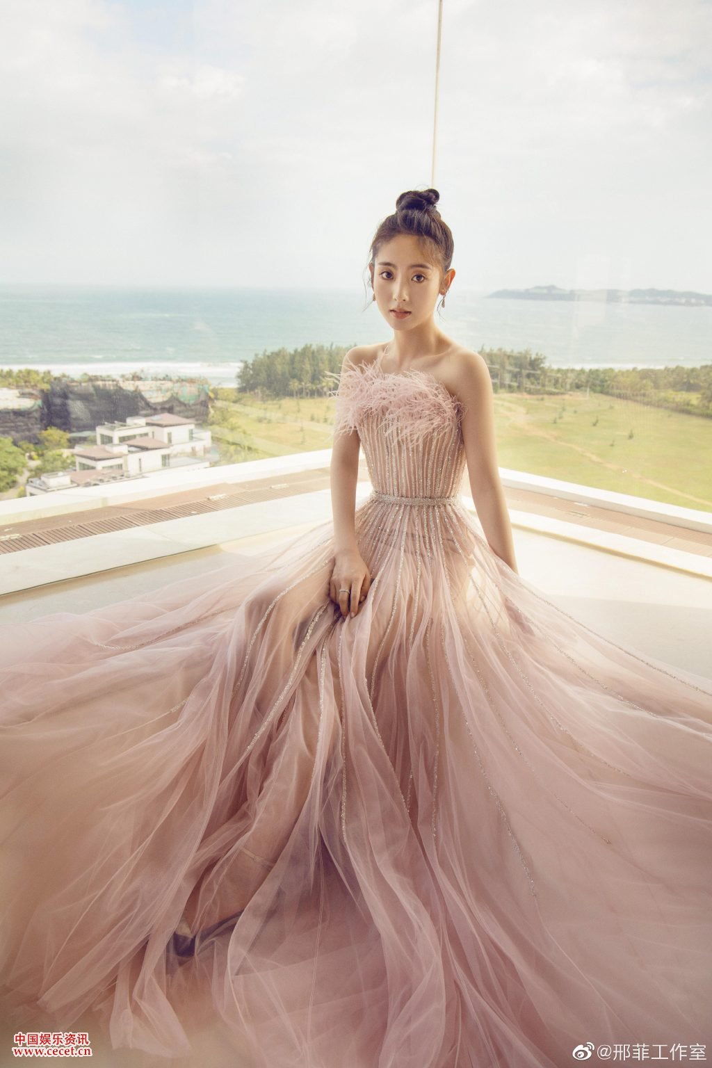 邢菲粉紅色曳地長(cháng)裙夢(mèng)幻而浪漫 讓人眼前一亮