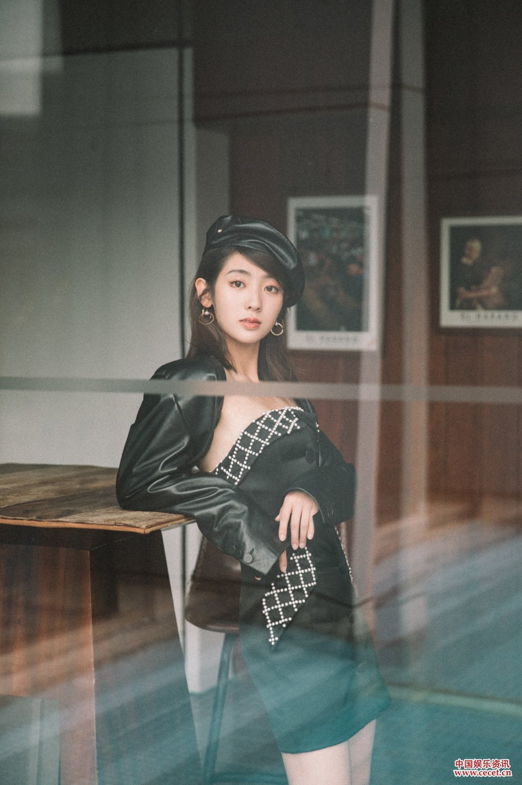 邢菲珍珠抹胸露背短裙搭配貝雷帽復古俏皮酷girl