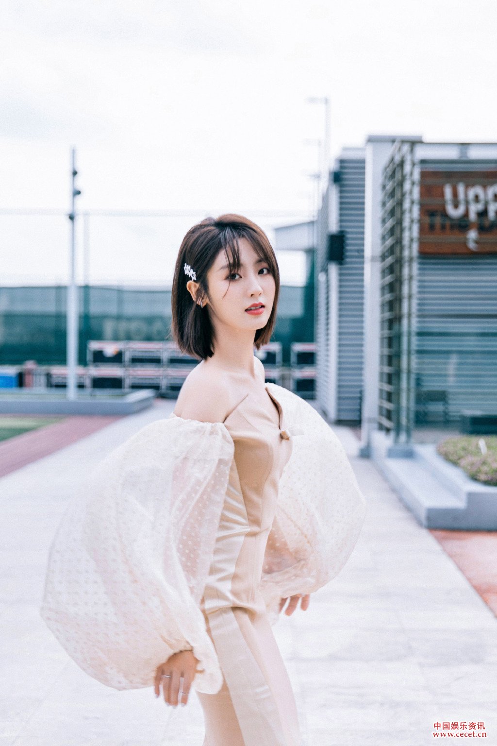 邢菲香檳泡泡袖禮裙照 游走在暖陽(yáng)下高甜少女
