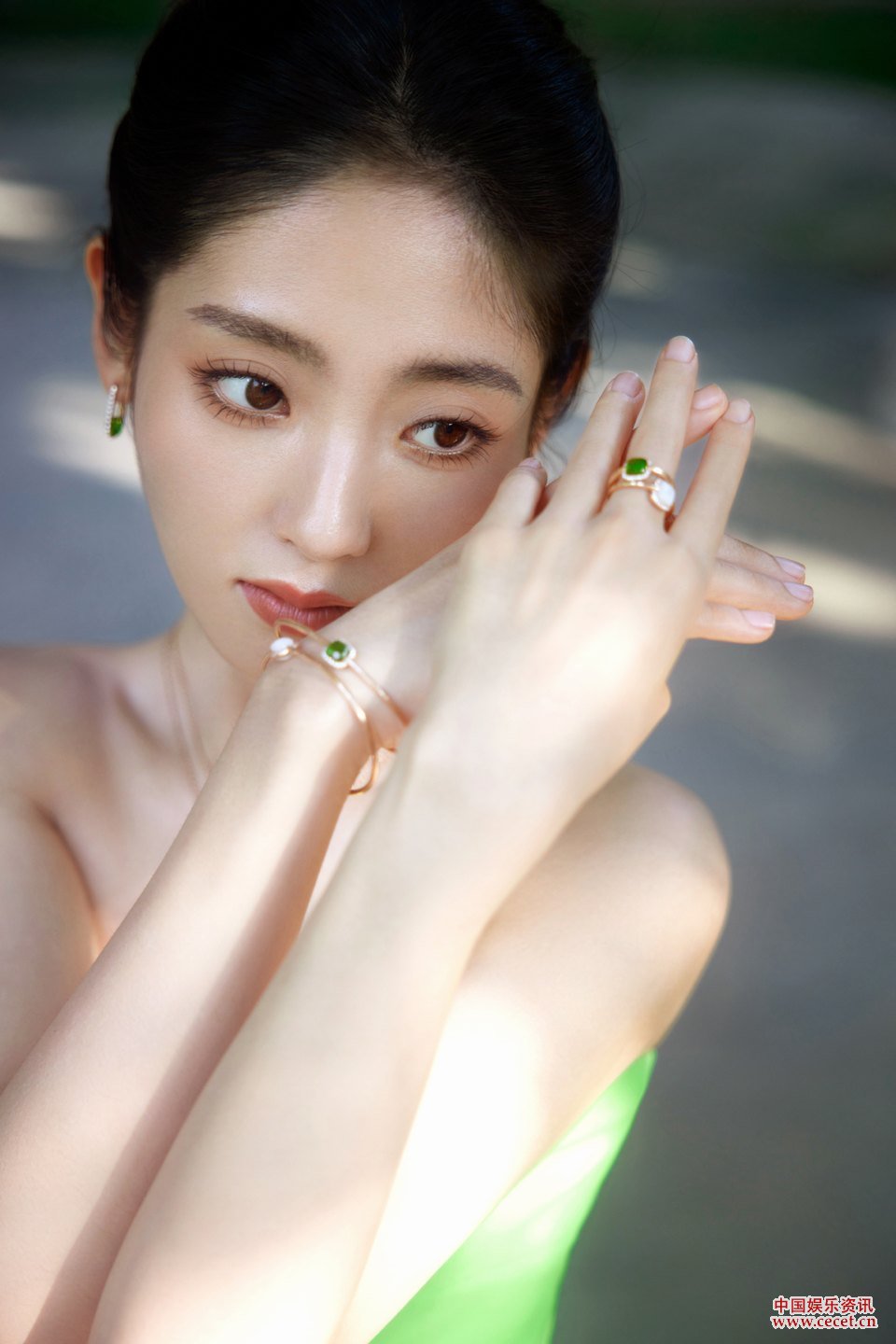 邢菲嫩綠色抹胸長(cháng)裙 驕陽(yáng)伴流光勾勒滿(mǎn)目絢爛