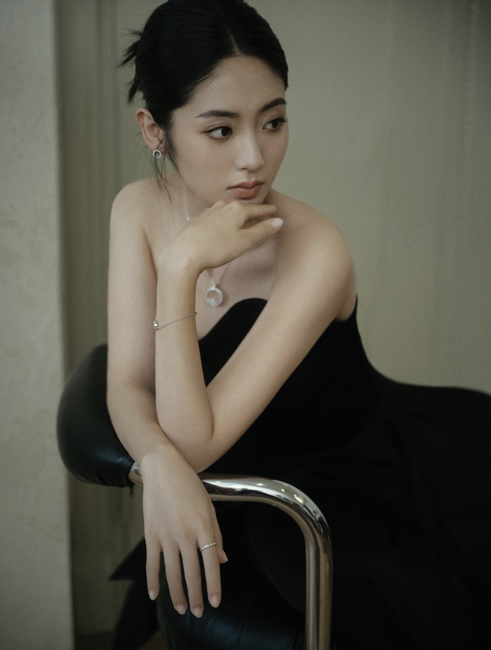 邢菲盤(pán)發(fā)抹胸黑裙冷御清雅 風(fēng)格自成勾勒不拘之美