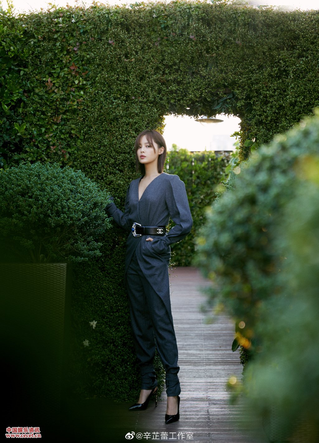 辛芷蕾灰藍色工裝現身 颯爽有型酷感十足