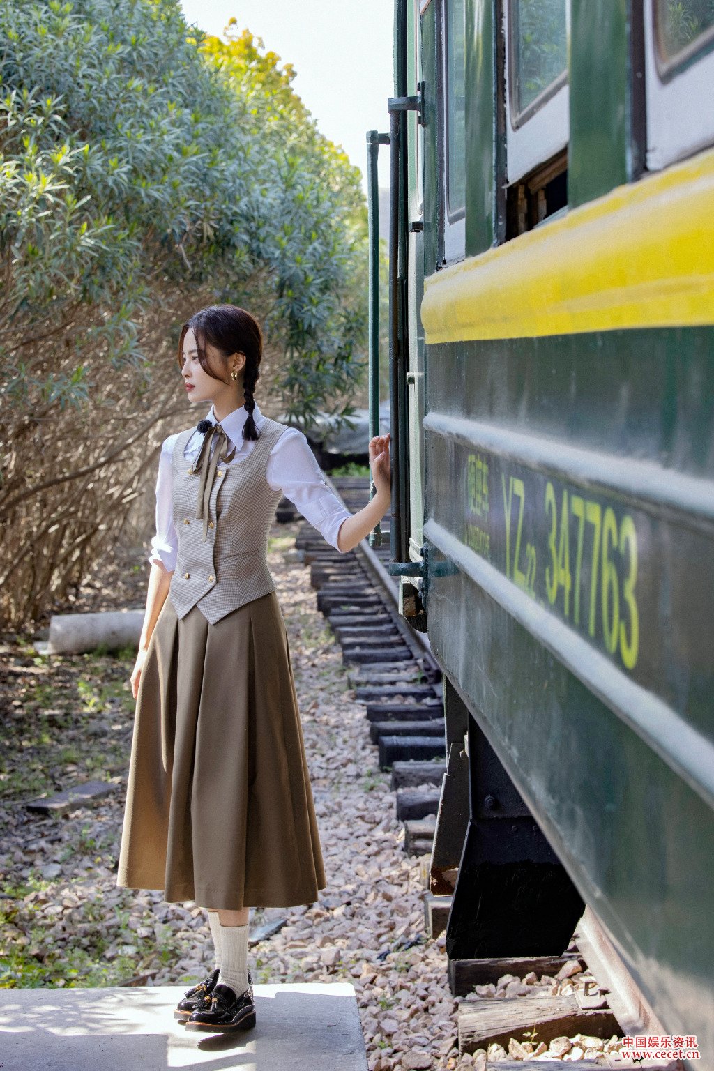 辛芷蕾演繹旅途復古風(fēng) 學(xué)妹裝扮重回青春