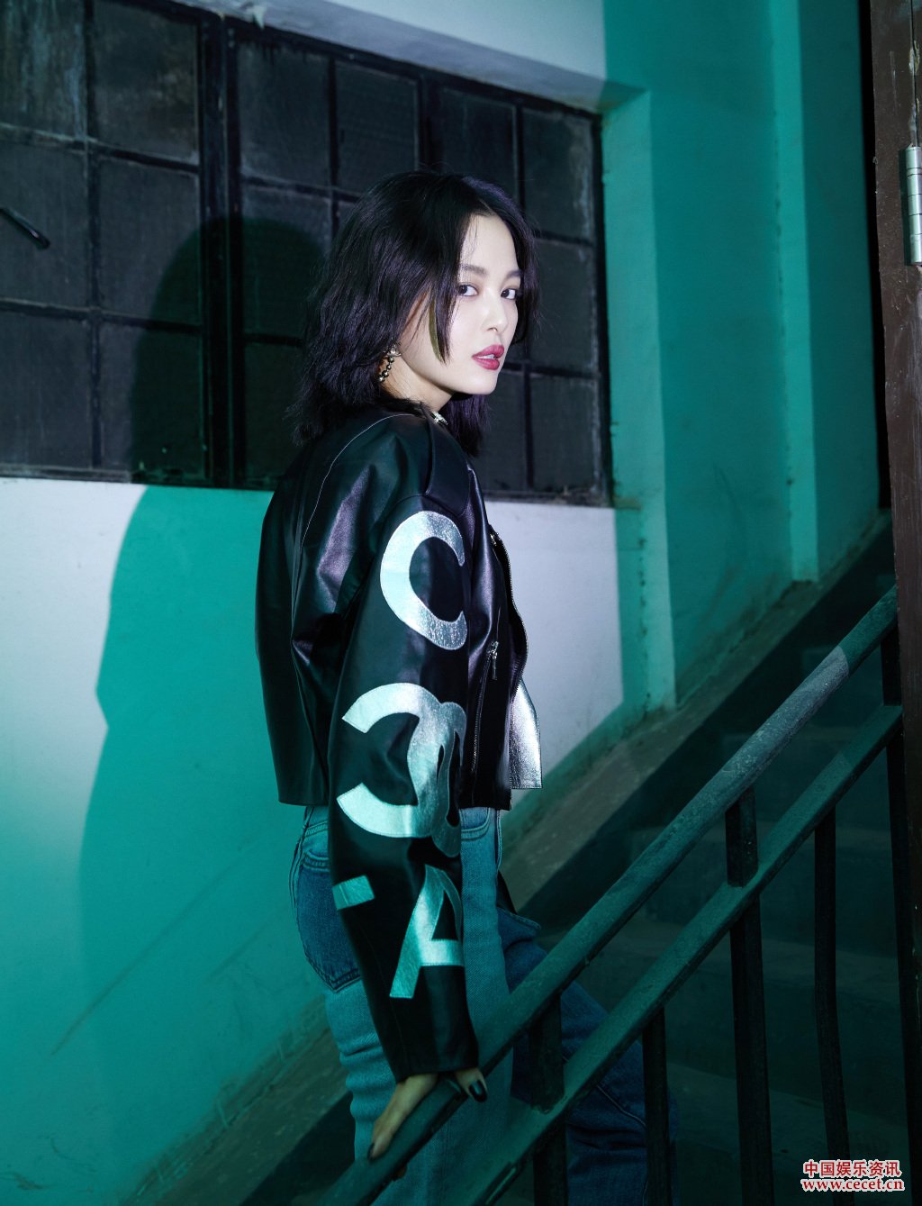 辛芷蕾黑色機車(chē)風(fēng)夾克利落簡(jiǎn)潔 隨性格調盡顯