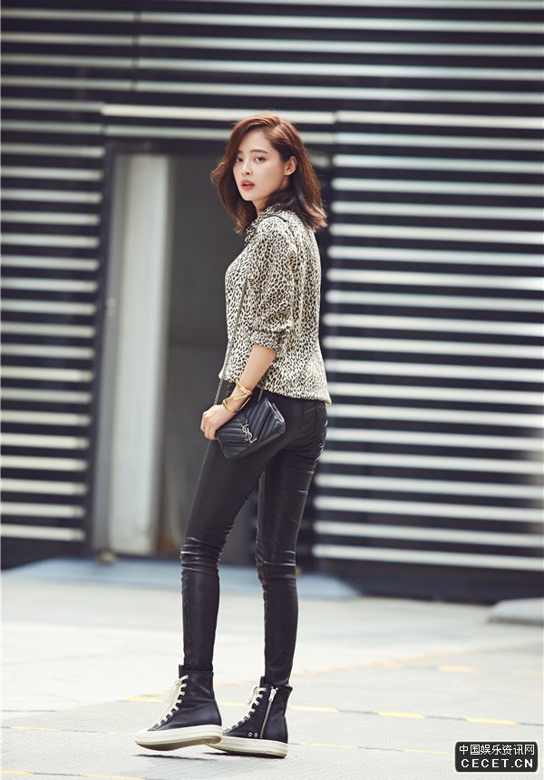 辛芷蕾豹紋襯衣出鏡 黑色皮衣散發(fā)誘惑魅力