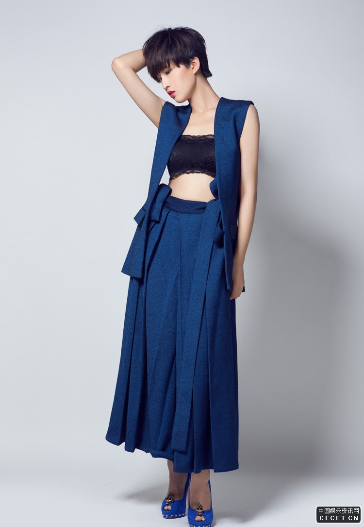 奚望鏤空馬甲簡(jiǎn)約有型 干練短發(fā)加烈焰紅唇