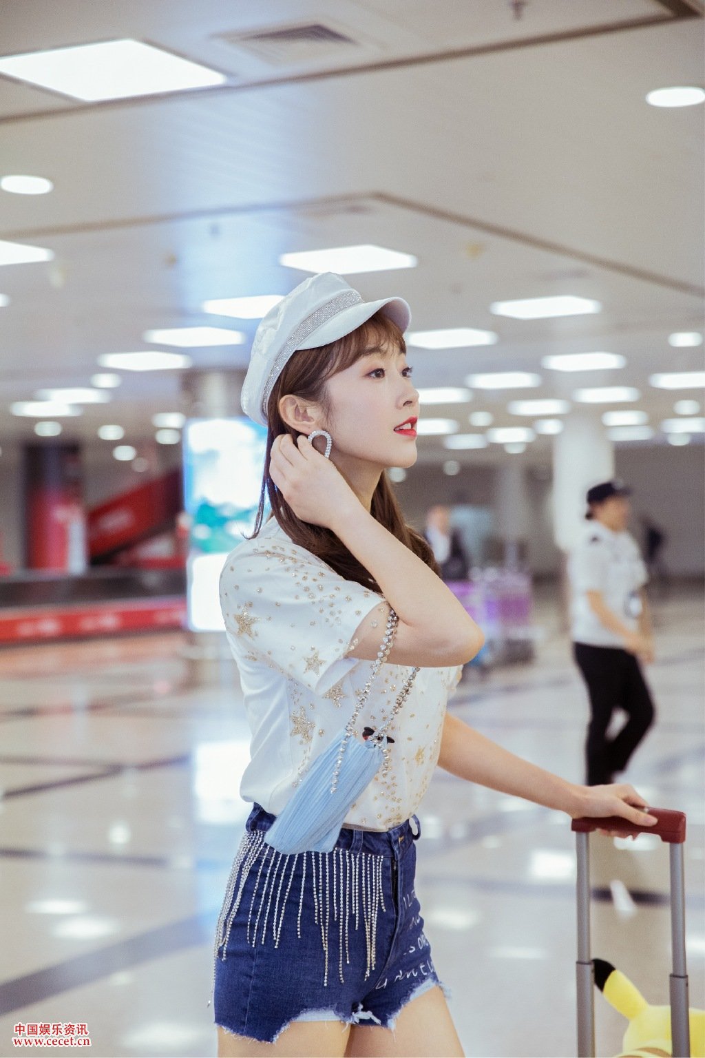 宣璐廈門(mén)機場(chǎng)美照 貝雷帽牛仔短褲大長(cháng)腿搶眼