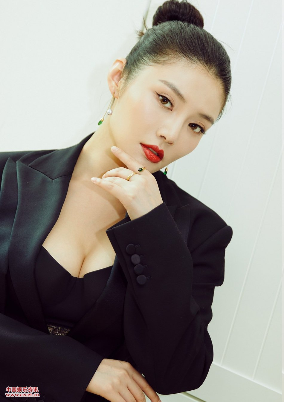 徐冬冬低胸黑西服亮相 烈焰紅唇性感吸睛