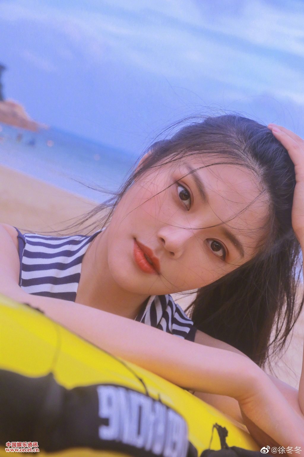 徐冬冬海邊沙灘復古照 五官精致露出馬甲線(xiàn)