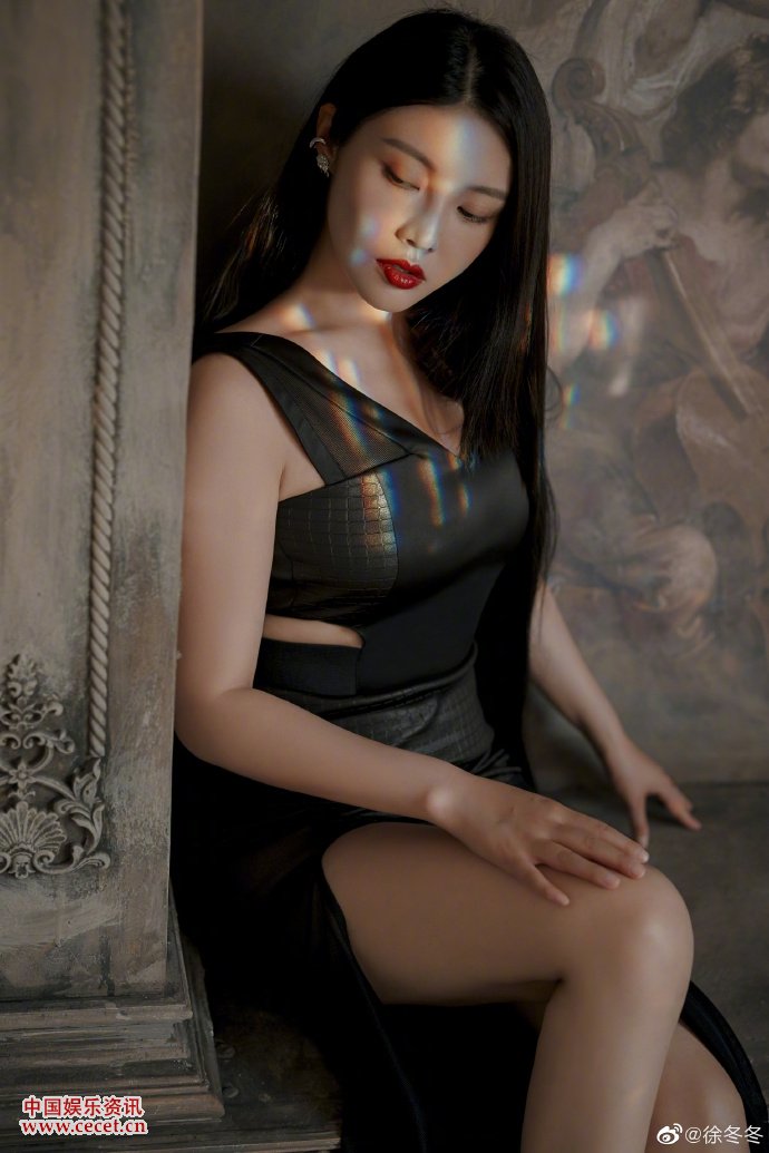 徐冬冬黑色緊身連衣裙置身古希臘壁畫(huà)豐滿(mǎn)嫵媚