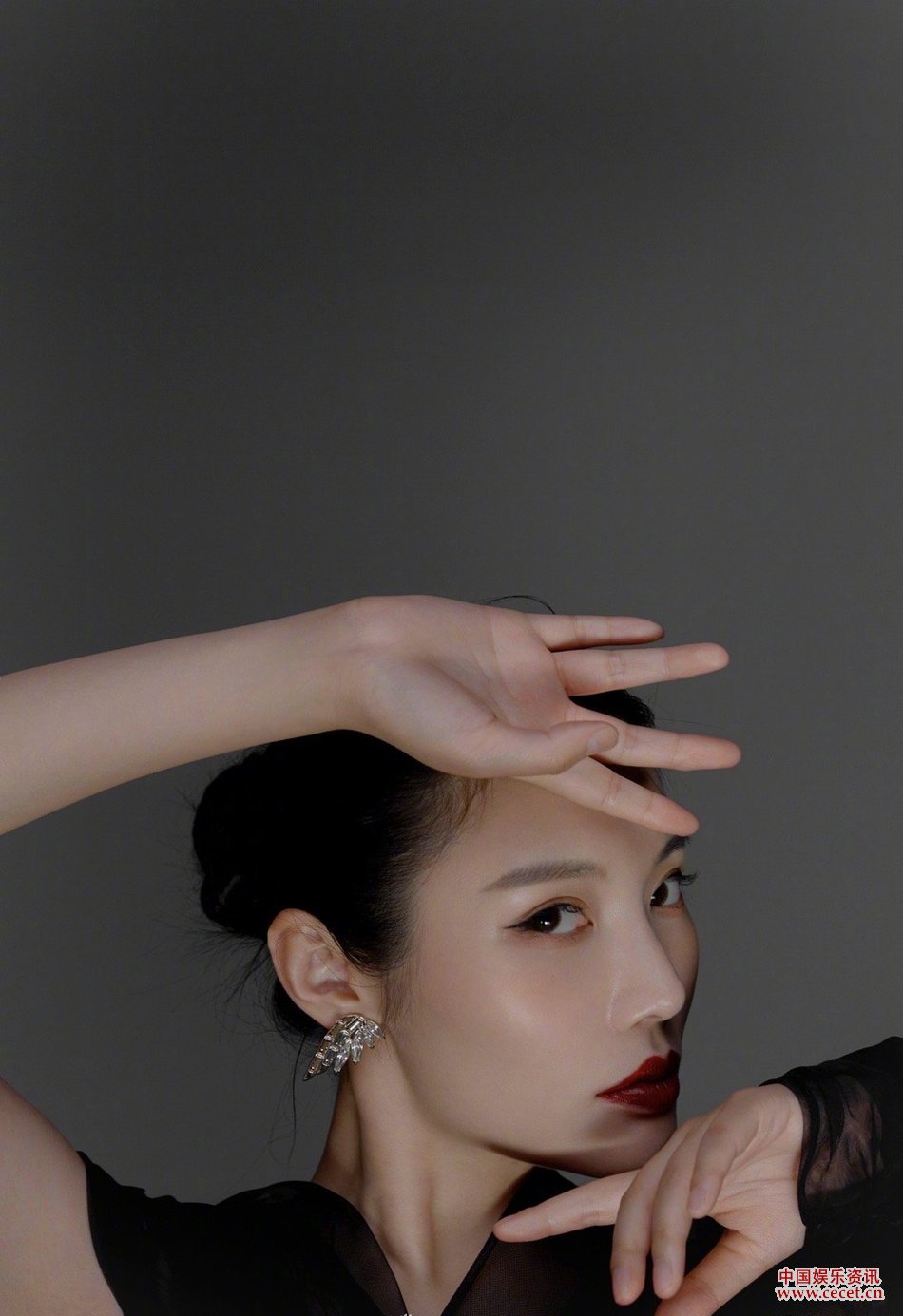 徐冬冬黑紗禮裙性感美圖 白皙皮膚嬌艷紅唇