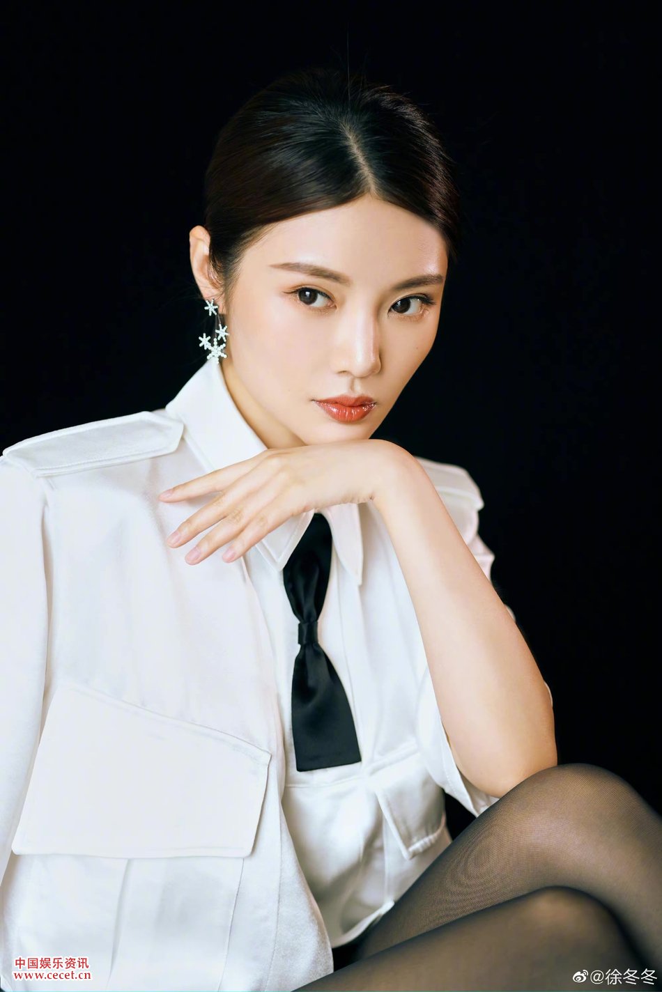 徐冬冬白襯衫簡(jiǎn)約別致 搭配黑色皮短褲大秀美腿
