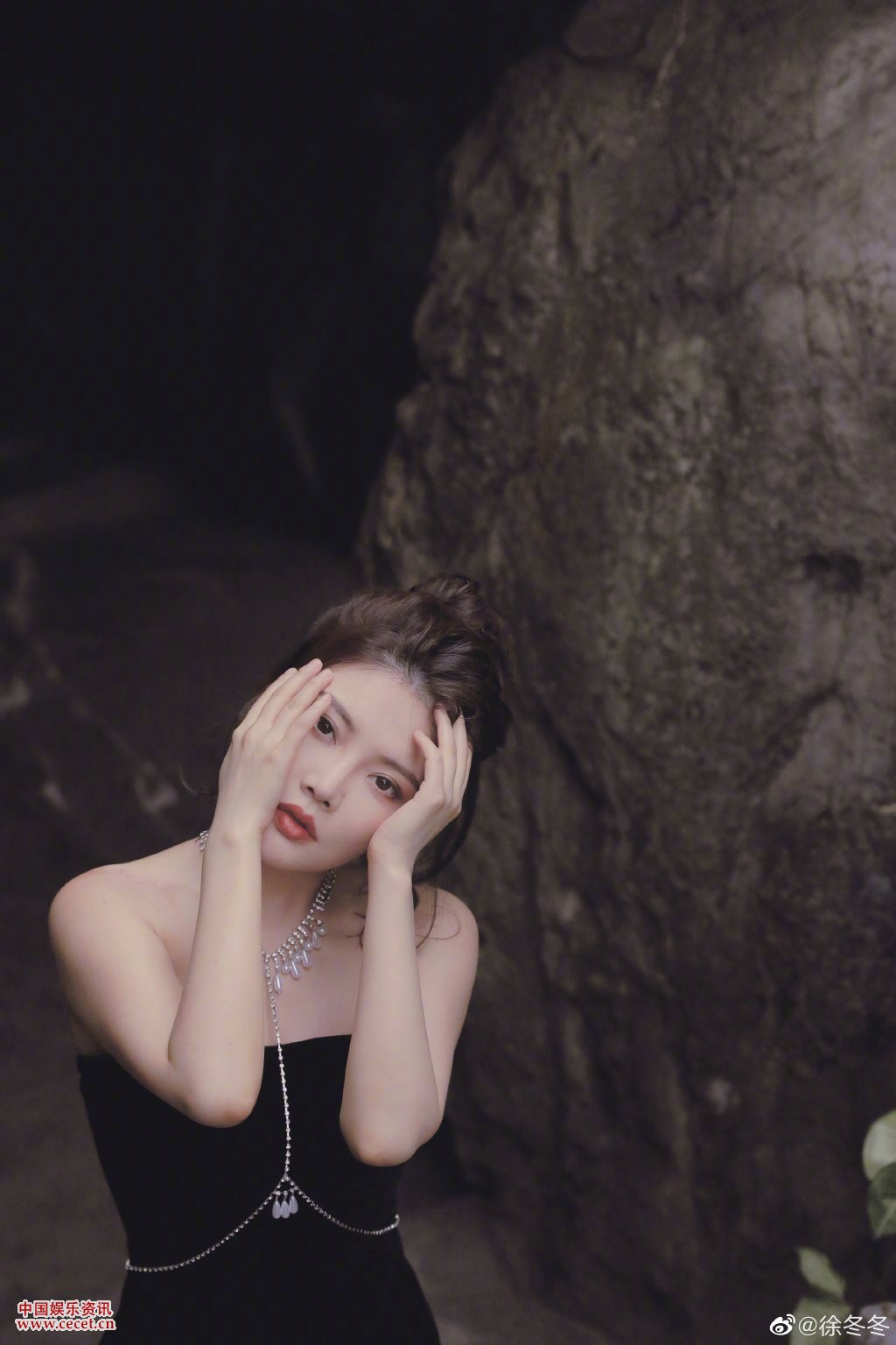 徐冬冬山洞里拍攝美照 抹胸黑裙露出白嫩大長(cháng)腿