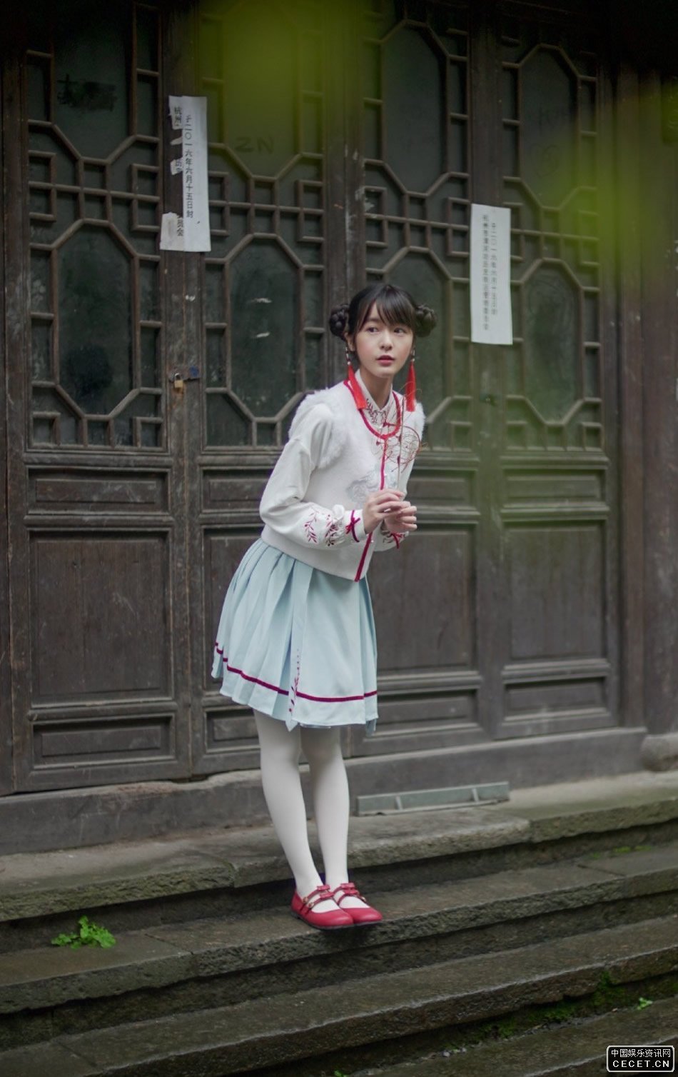 徐嬌藍裙白襪古典寫(xiě)真 哪吒頭宛如大家閨秀