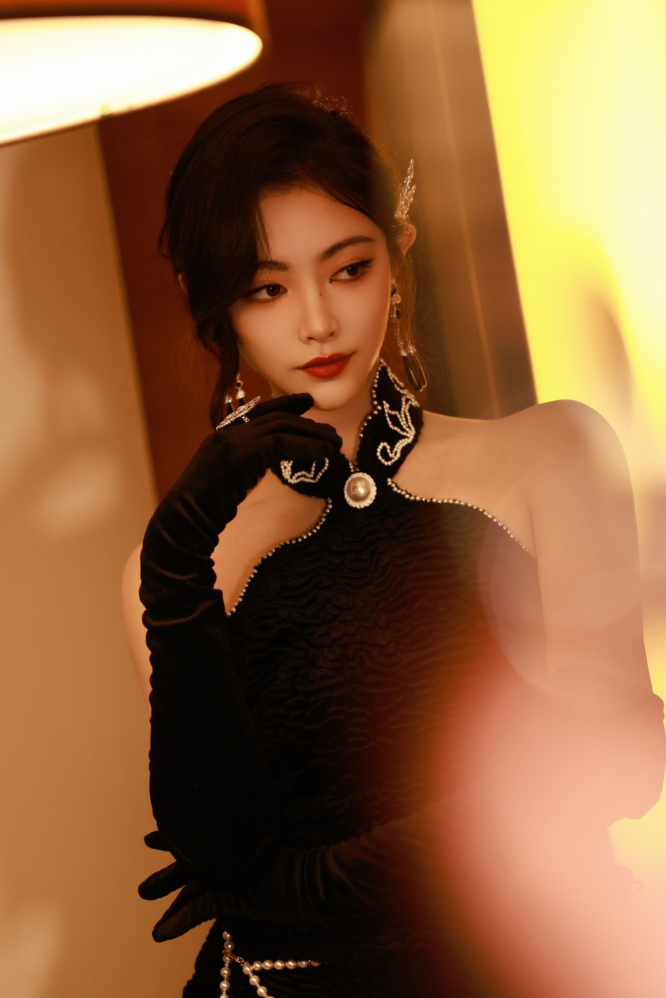 許佳琪黑色長(cháng)裙復古韻味 繁華盛宴神秘魅惑