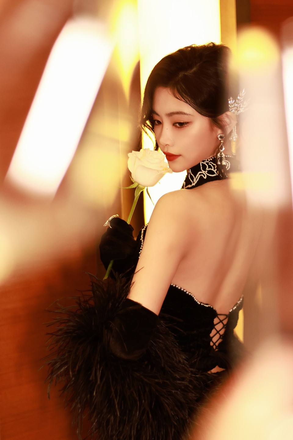 許佳琪黑色長(cháng)裙復古韻味 繁華盛宴神秘魅惑