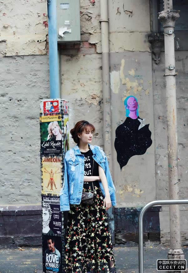 徐璐碎花長(cháng)裙時(shí)尚街拍 佇立街頭文藝小清新