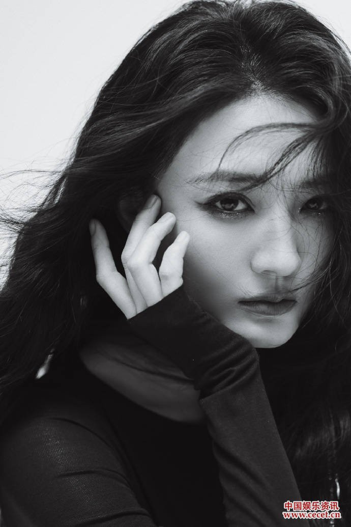 徐璐黑白酷颯大片 下搭牛仔褲和中筒系帶靴