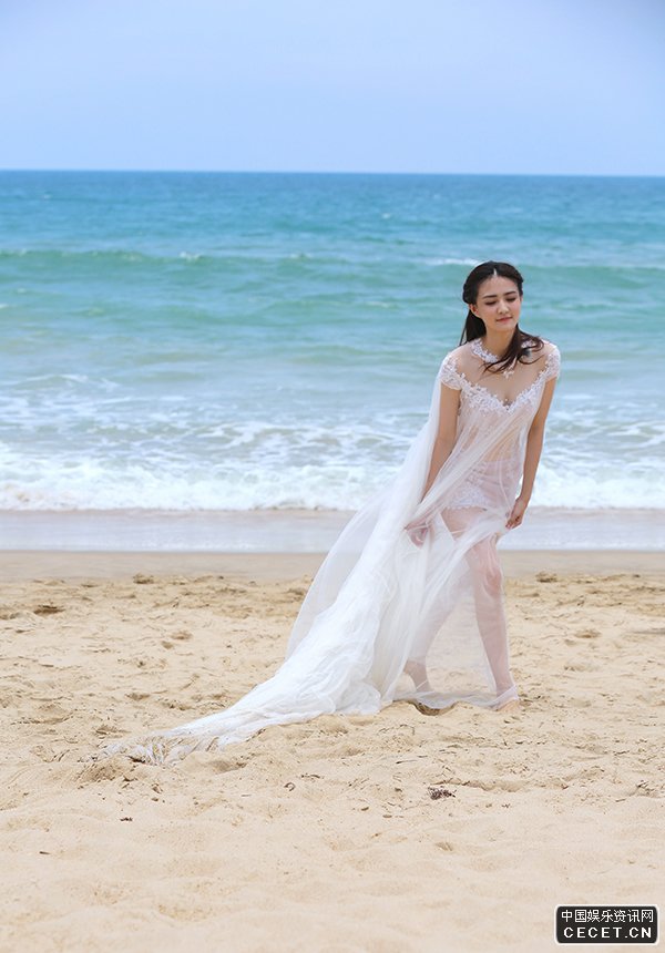 徐璐海邊唯美婚紗大片 清新迷人笑靨如花