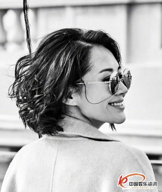許晴條紋戲服黑白寫(xiě)真 短發(fā)亮眼開(kāi)懷大笑