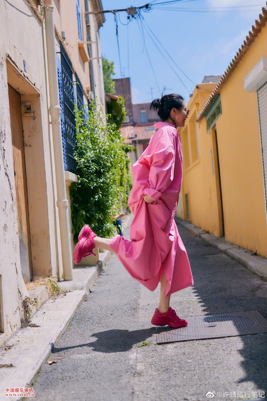 許晴粉色寬大衣服美照 調皮可愛(ài)滿(mǎn)滿(mǎn)的少女感
