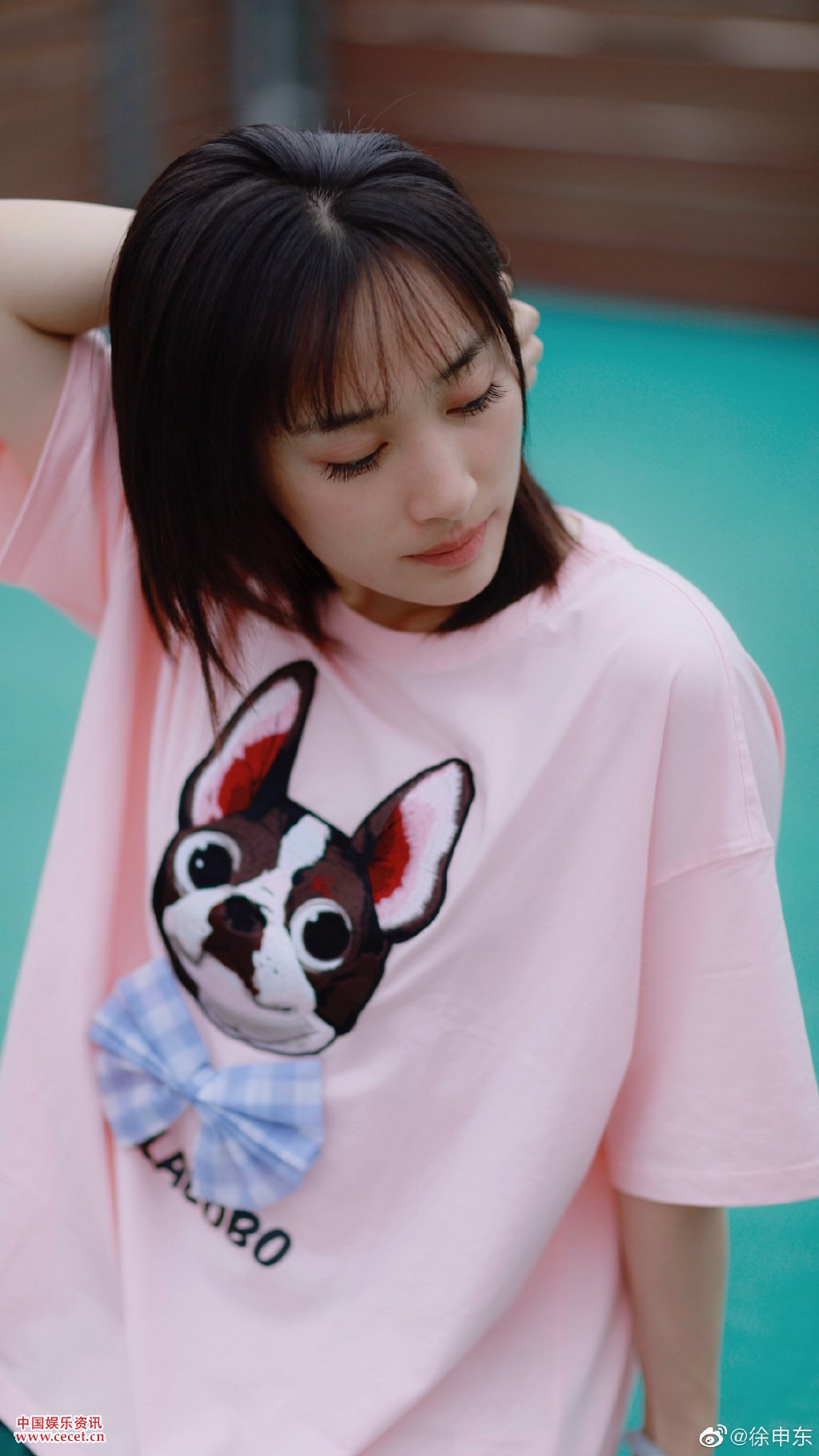 徐申?yáng)|粉色T桖休閑照 整體造型少女感十足