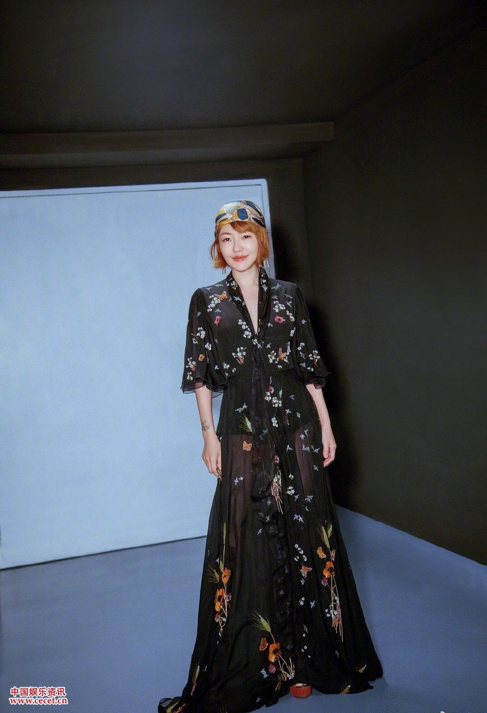 小S一身深V花裙配花頭巾亮相 俏皮十足