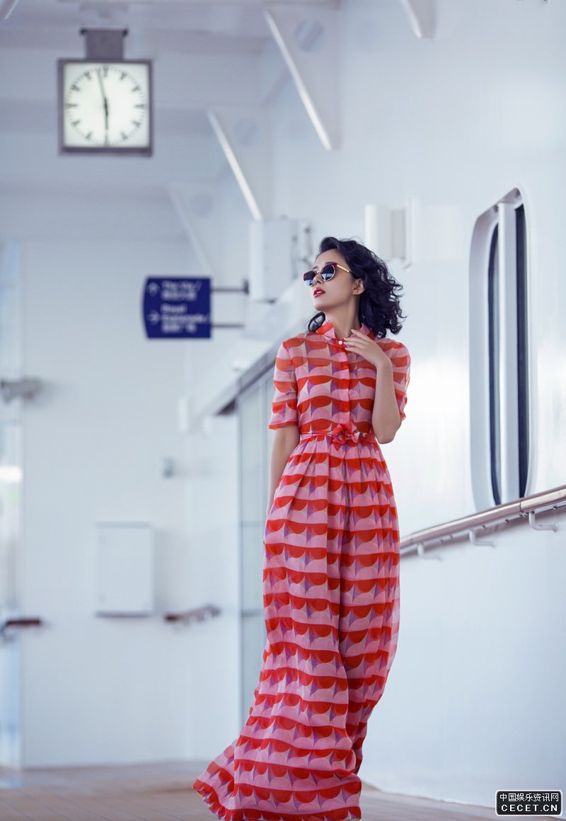 顏丹晨推紅唇嬌媚寫(xiě)真 漫步甲板盡顯慵懶