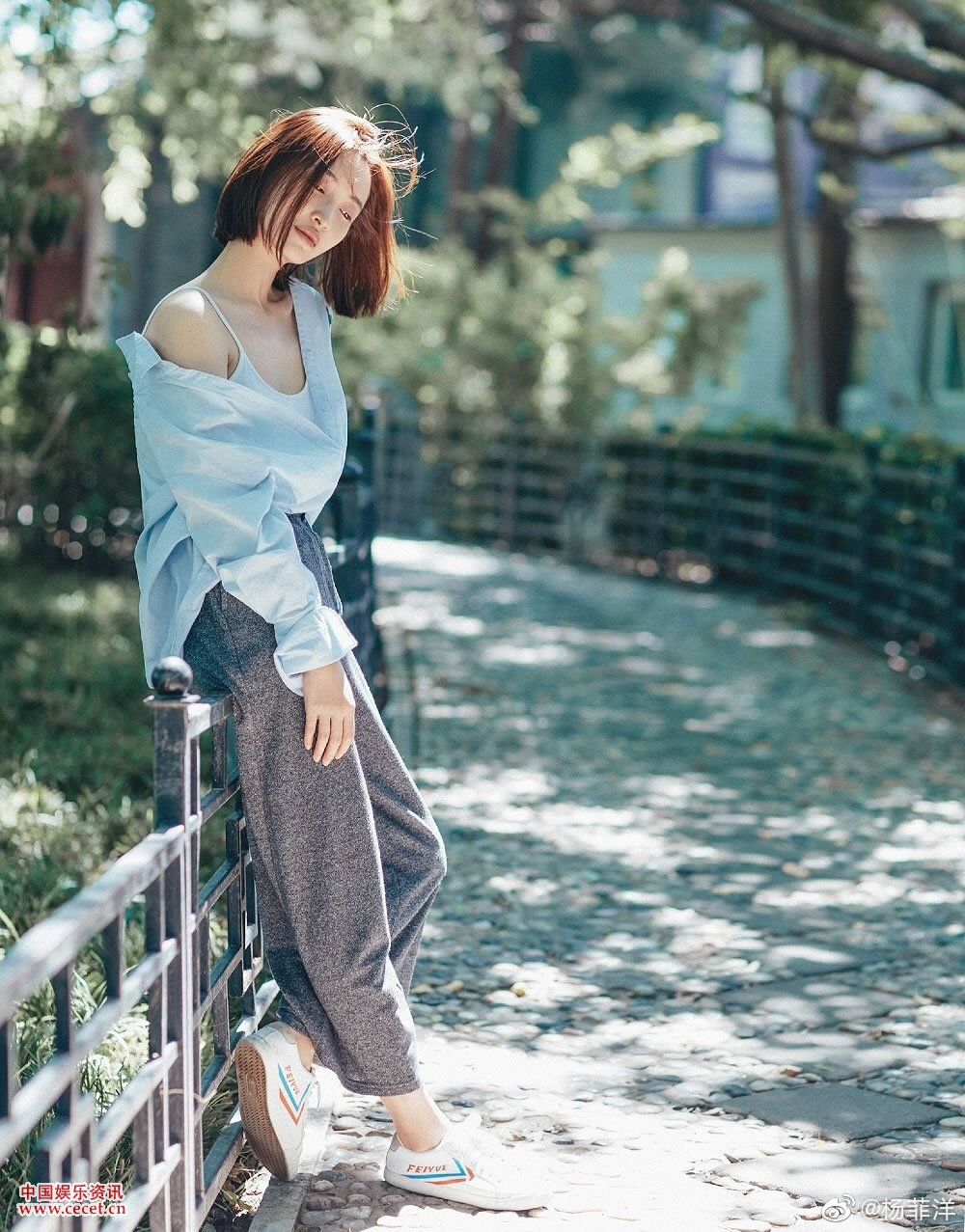 楊菲洋素顏出鏡 大露白皙香肩少女感十足