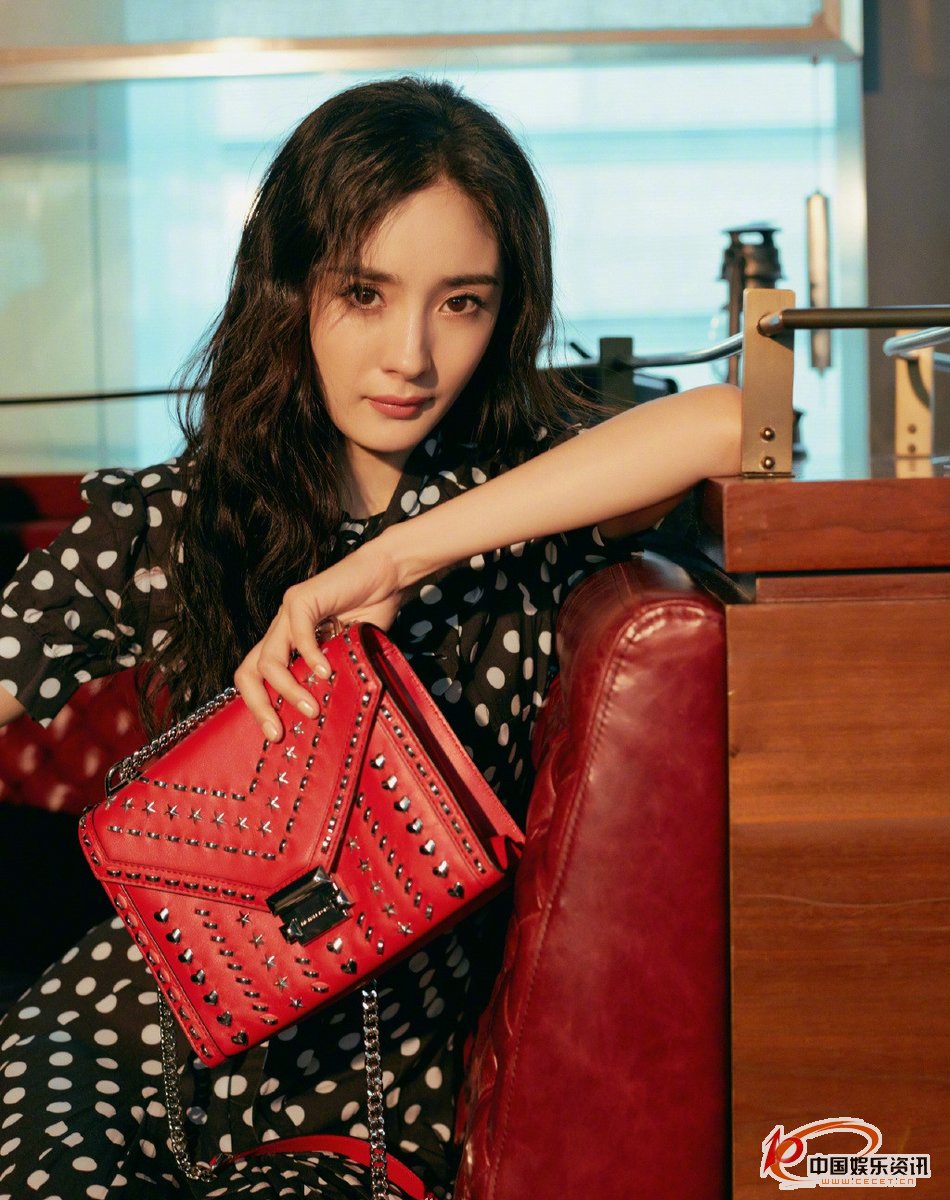 楊冪黑色波點(diǎn)裙化身香包佳人演繹復古情調