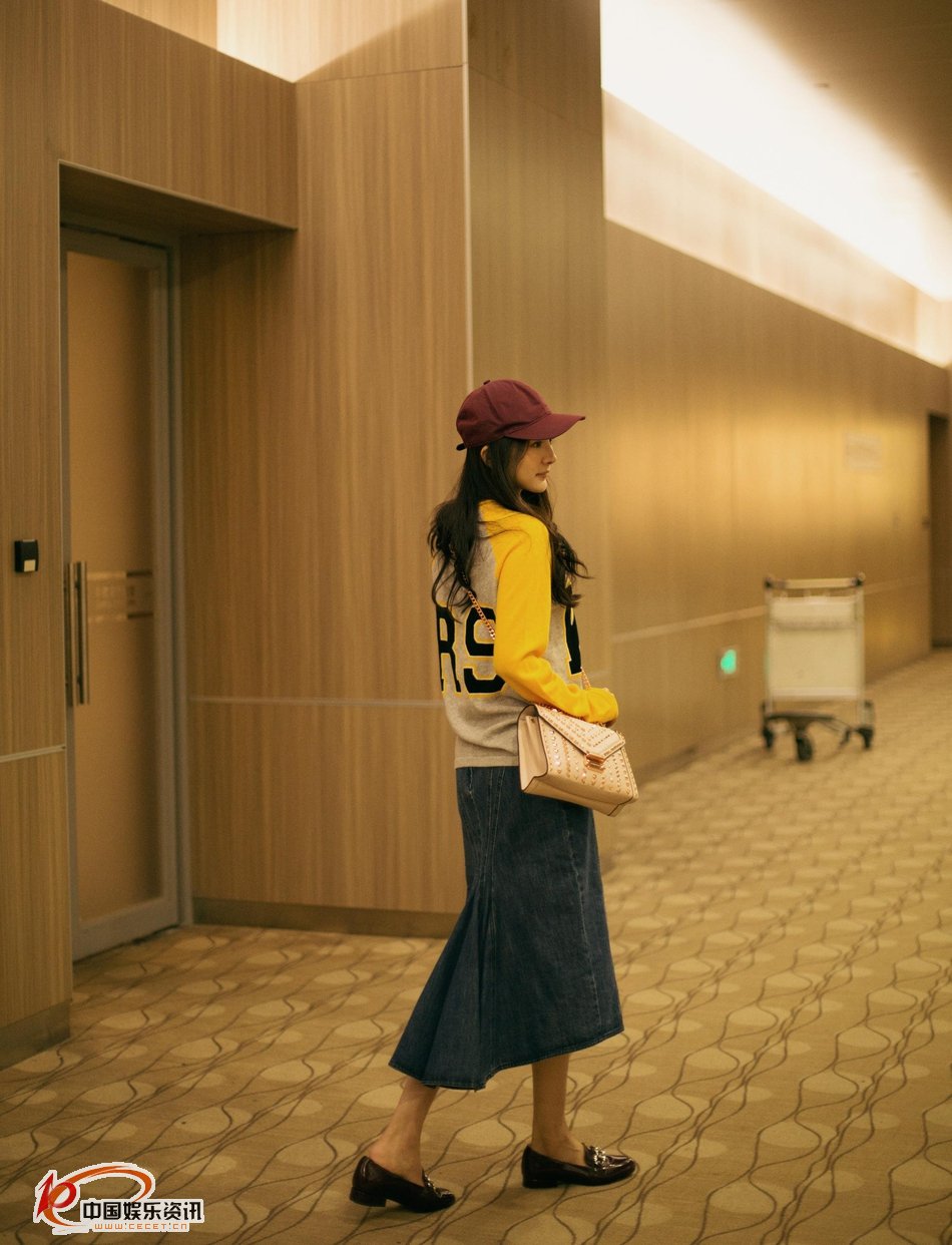 楊冪現身上海機場(chǎng) 牛仔半裙打扮輕松自在