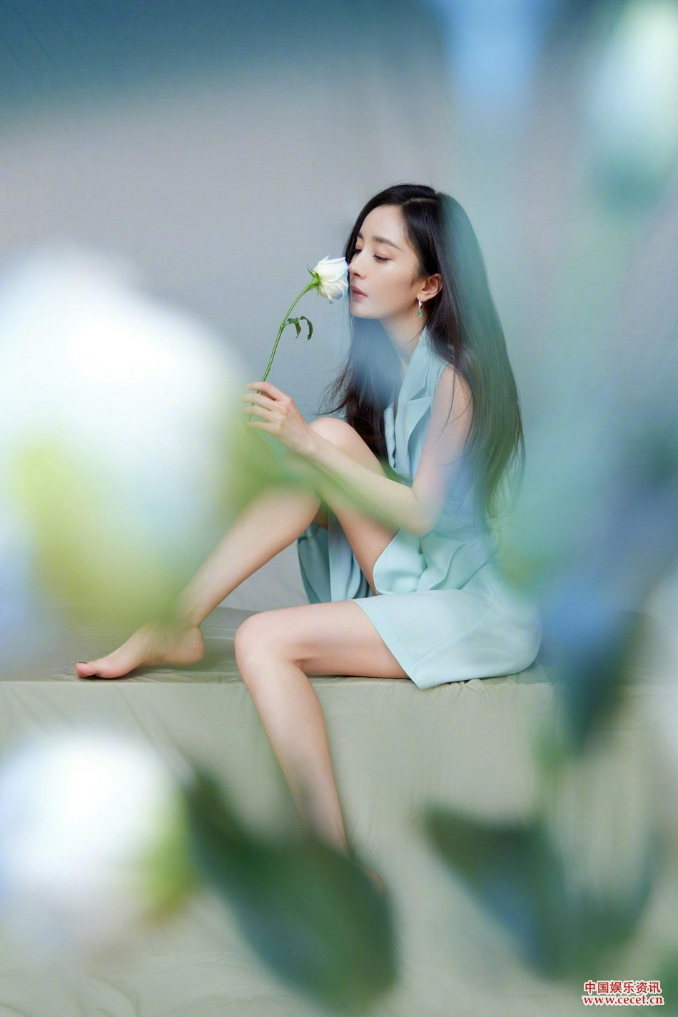 楊冪國風(fēng)裙寫(xiě)真圖 扇子遮面顯得清新純美