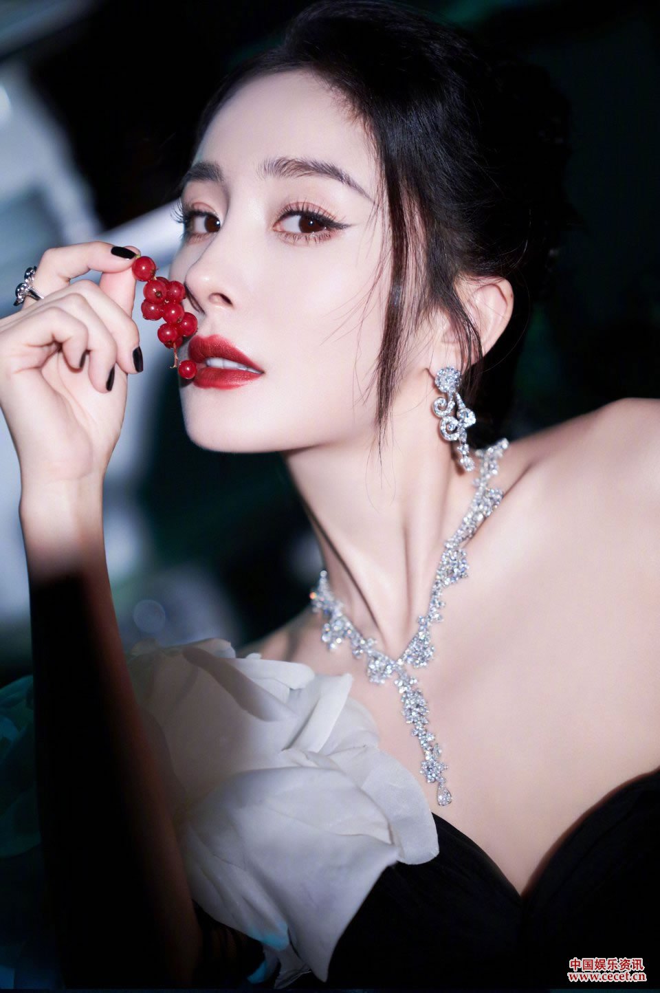 楊冪墨絲輕挽明眸善睞 宛若暗夜女王優(yōu)雅神秘