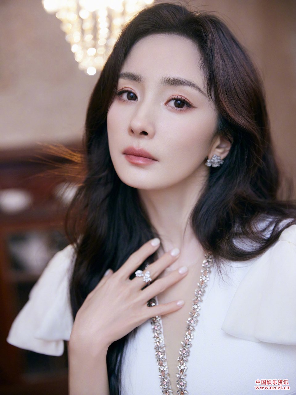 楊冪純白色高定禮服 裙擺層疊搖曳曼妙步步生羽