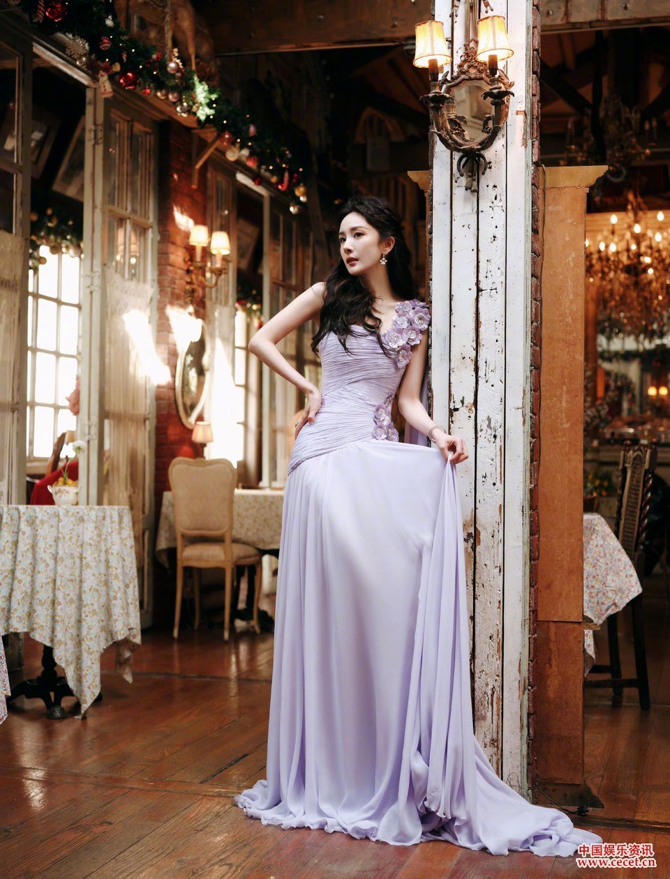 楊冪點(diǎn)滴溫柔縷縷清風(fēng) 澆灌出整株丁香色的嬌艷