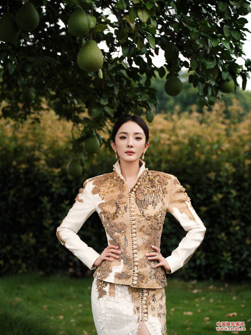 楊冪置身郊外綻放夢(mèng)幻光華 鎏光閃耀綺麗輝映
