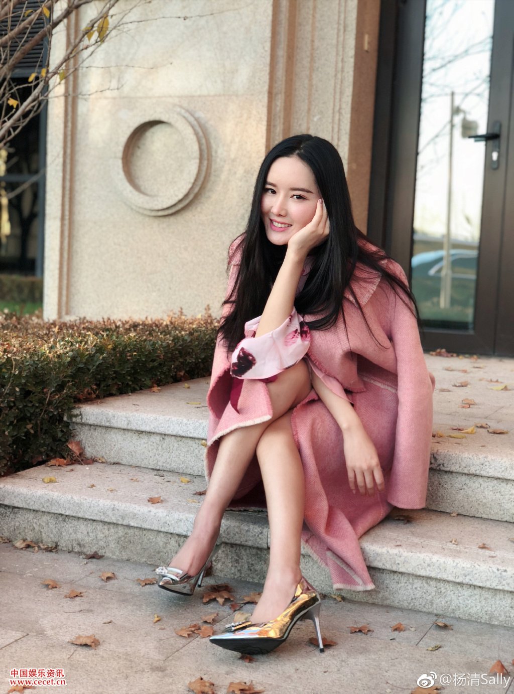 楊清長(cháng)發(fā)披肩甜美伊人 纖細腰身大長(cháng)腿筆直