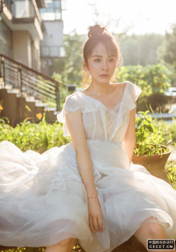 楊若兮白紗裙仙氣逼人 保持白皙細嫩的肌膚
