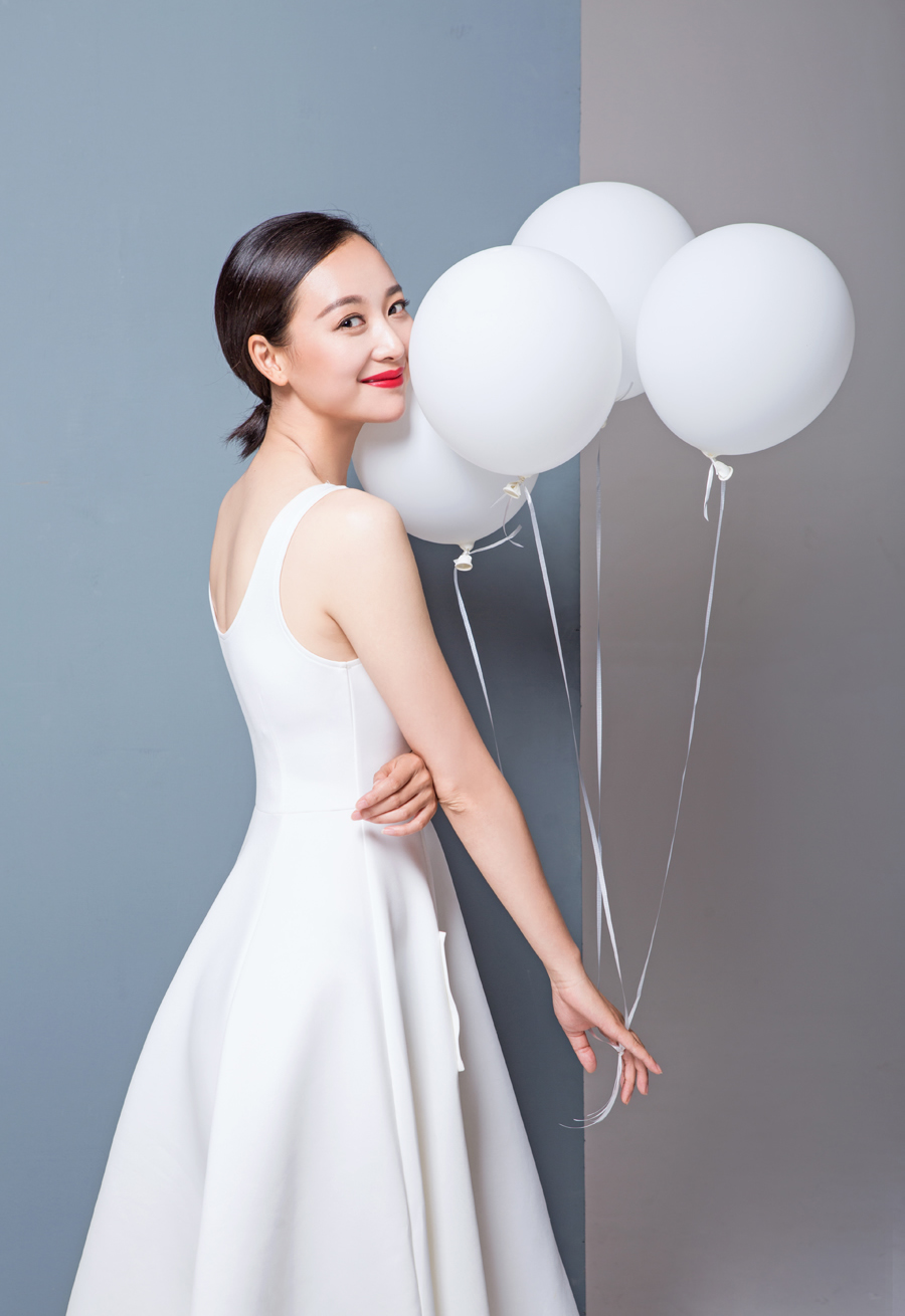 楊舒純白連衣裙寫(xiě)真照 白凈的肌膚自然的妝容