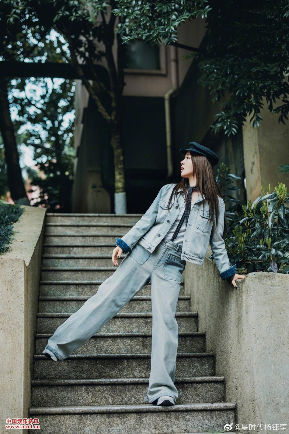 楊鈺瑩牛仔套裝美照 黑長(cháng)直造型盡顯溫柔氣質(zhì)