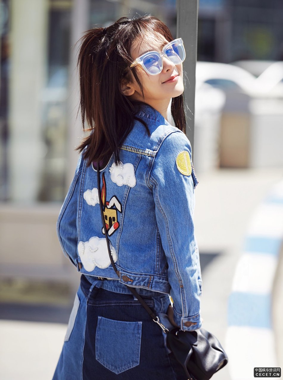 楊紫印花牛仔外套街拍 大展自由隨性魅力