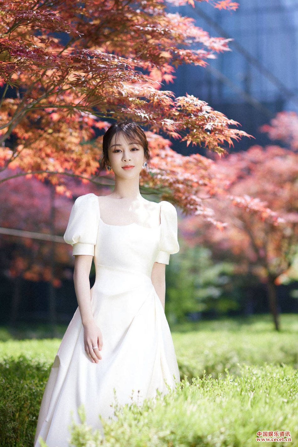 楊紫白裙置身紅葉中 好似仙女下凡氛圍感十足