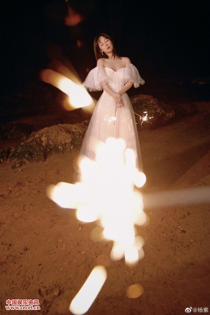 楊紫海邊沙灘煙花大片 手拿仙女棒瞬間仙氣飄飄